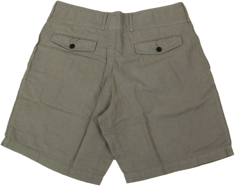 麻混のハーフパンツです。きれいなカーキに麻の質感が夏らしいです。