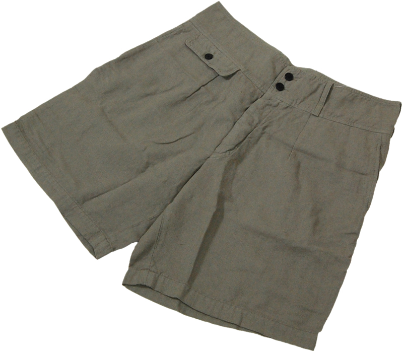 麻混のハーフパンツです。きれいなカーキに麻の質感が夏らしいです。