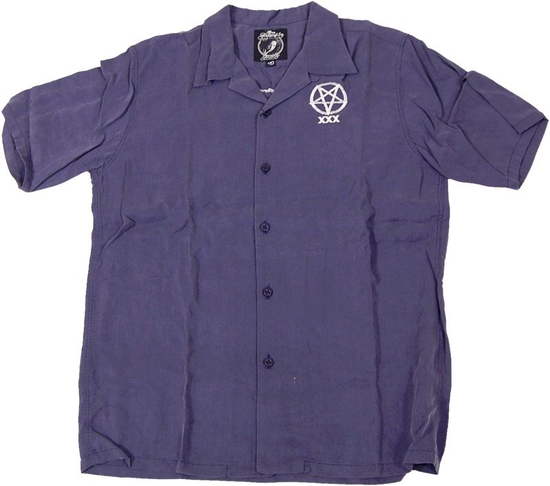 バックに大きくシルバーの刺繍が入ったxxxのシャツです。きれいなパープルでテンセルの柔らかくさらっとした素材が気持ちいいです。