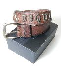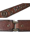 ロゴと錨、舵のメタルで装飾されたベルトです。肉厚のしっかりとしたレザーとメタルで重量感があります。本体は2カ所、リングでつなげてあります。