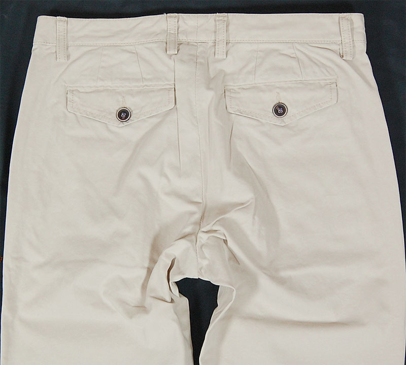 マーサーの綿パンツです。イタリアブランドらしい、洗いをかけた上質な素材を使用。色は アイボリーです。インコテックスやPT01にも劣らないクオリティとデザインで、カジュアルな上質イタリアパンツをお探しの方にぜひお勧めしたいブランドです。ボタンやステッチの色にもこだわっています。ルーマニア製です。
