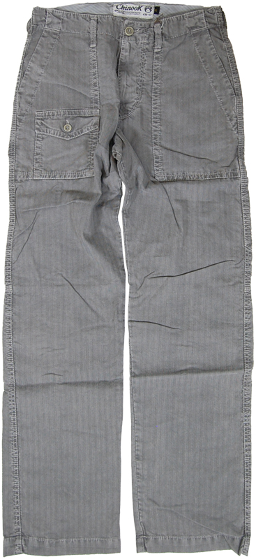 夏に涼しげなリネン混のパンツです。ミリタリーテイストのデザインで使いやすいです。チヌークらしいこだわりのある素材で、着込むほどに味がでてきます。
