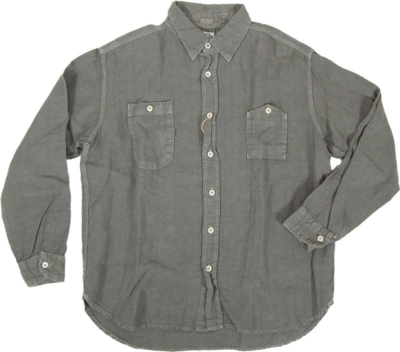 ヘンプ(麻)のシャツです。夏にぴったりの涼しげな素材感です。着込むと当たりや色落ちで、いい味が出てきます。中国製