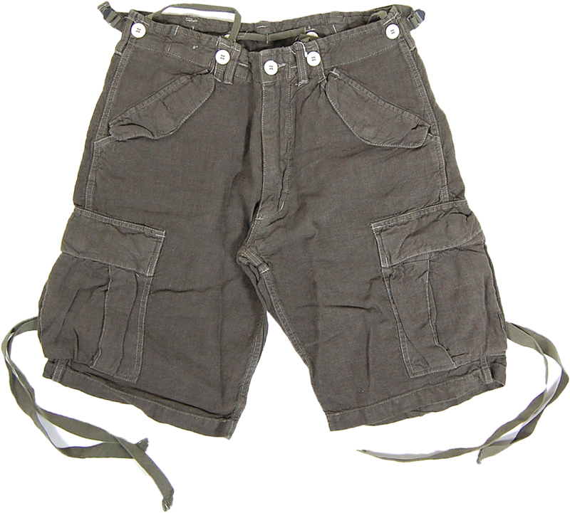 オリーブ麻ハーフカーゴパンツ