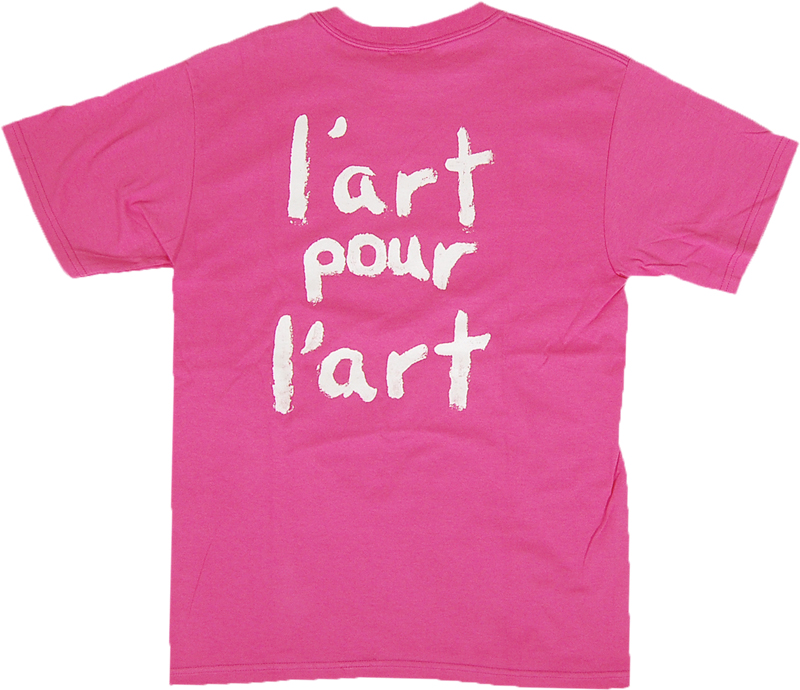 手書きのプリントが格好いいTシャツです。前面には「Avant garde(前衛芸術)」、背面には「l'art pour l'art(芸術至上主義)」のプリントが入っています。アメリカ製です。