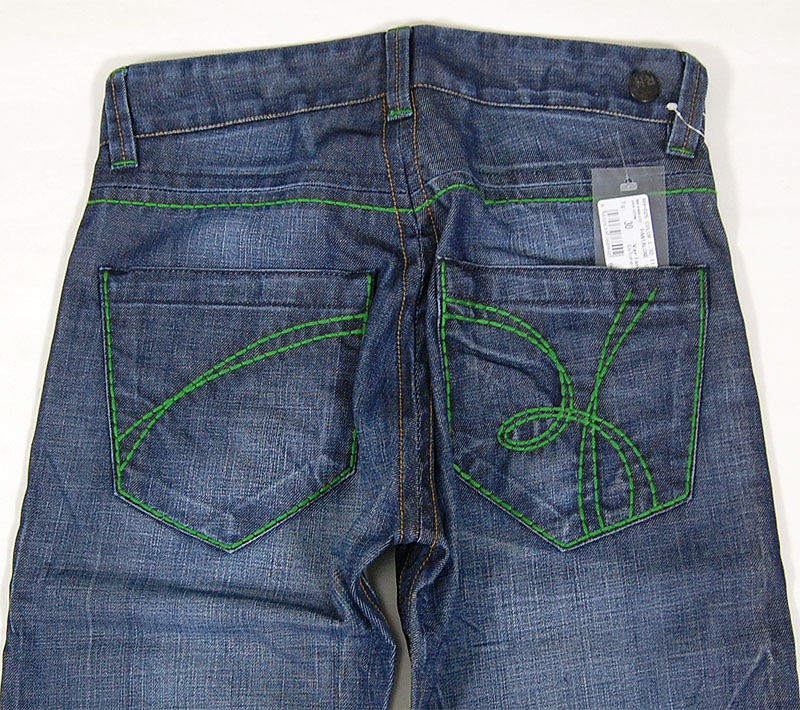 ヒップポケットのロゴステッチや太めのステッチがリハッシュらしいお洒落なデニムです。グリーンのステッチが印象的です。イタリア製です。
