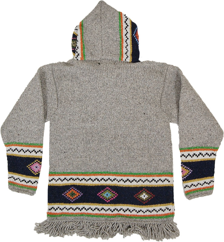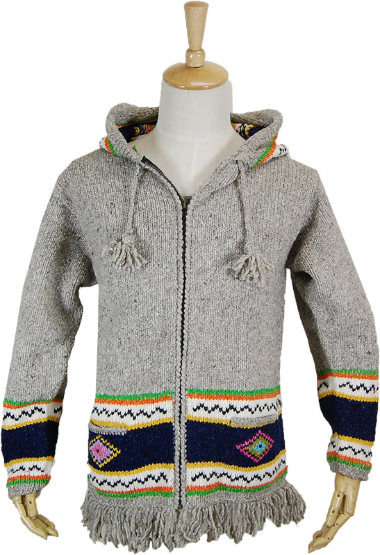 アルテサニアのニットパーカーです。このブランドらしいエスニックな柄にフリンジがかわいらしいアクセントになったニットです。ユニセックスで女性はXS男性はMに相当します。エクアドル製です。