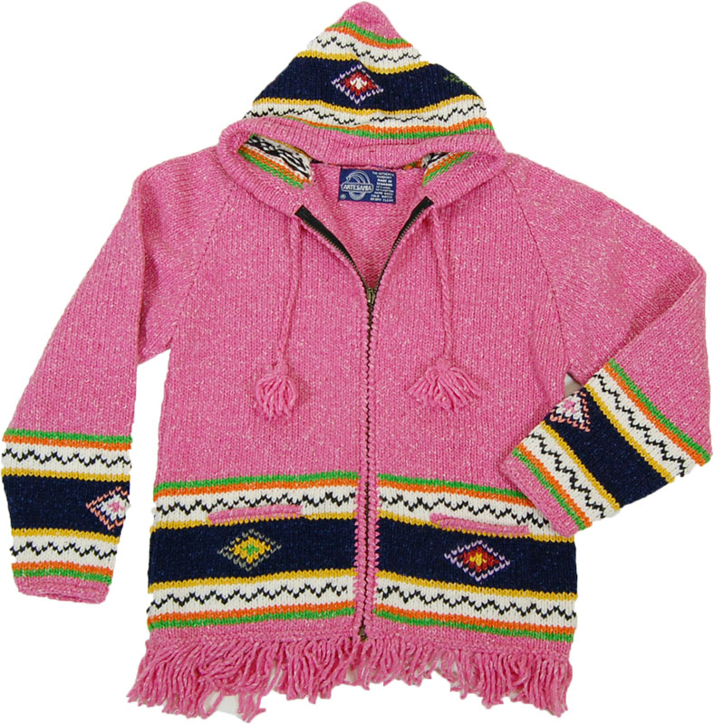 アルテサニアのニットパーカーです。このブランドらしいエスニックな柄にフリンジがかわいらしいアクセントになったニットです。ユニセックスで女性はXS男性はMに相当します。エクアドル製です。
