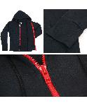 厚手のジップパーカーです。内側はサーマル生地になっており、保温性も高く、肌触りもいいです。黒にカラフルなジッパーがおしゃれなアクセントになっています。シルエットもすっきりしています。アメリカ製です。
