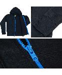 厚手のジップパーカーです。内側はサーマル生地になっており、保温性も高く、肌触りもいいです。黒にカラフルなジッパーがおしゃれなアクセントになっています。シルエットもすっきりしています。アメリカ製です。