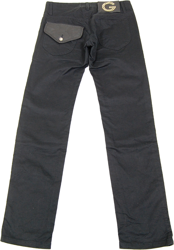 ガッザリーニのデザインパンツです。大きなレザーフラップをつけた左側のポケットが目を惹きます。レザーラベルにはスタッズでGが打たれています。ローライズ、細身の洗練されたシルエットがポケットやステッチ、ラベルのデザインを引き立たせています。