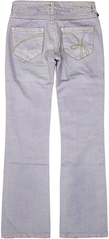 クラッシュ加工デニムです。きれいなライトパープルは春夏にぴったりの色です。ヒップポケットにはロゴをあしらったステッチが入っています。ブーツカットのきれいなシルエットです。