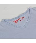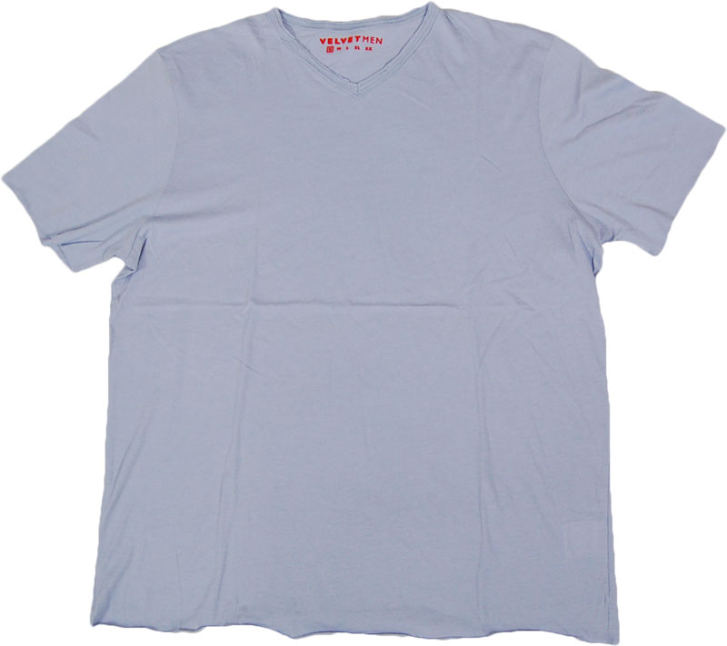肌触りの良いコットン素材で着心地も抜群なライトパープルのVネックカットソーです。裾、袖は切りっぱなしになっています。深すぎないVネックで合わせる物を選ばない万能な一枚です。アメリカ製。