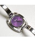 パープルフェイスのメタルバングルウォッチです。シンプルなフェイスに、浮いているようなデザインは、高級感と上品さがあります。ボックス、説明書が付属します。