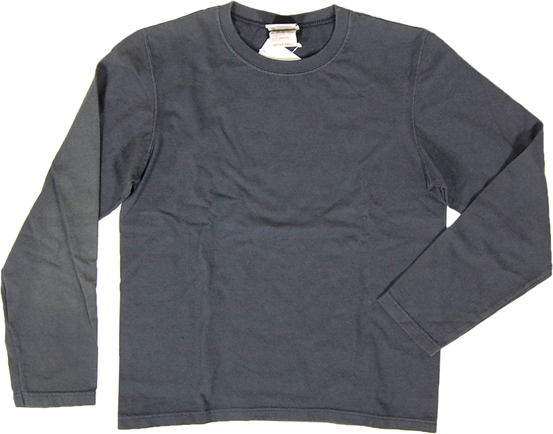 Goodwearの長袖Tシャツです。ヘビーコットンの生地にオーバーダイ(後染め)加工することで、独特の素材感を出しています。着こむと色落ちや当たりが出てきていい味が出てくるのも特徴です。使い込んでもよれにくいGoodwearのTシャツならではの楽しみ方です。こちらの色は写真1,2枚目をご参照ください。アメリカ製です。表記はXSですが、レディースサイズのMに相当します。トルソはXSを着用しています。