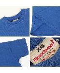 Goodwearの半袖Tシャツです。ヘビーコットンの生地にオーバーダイ(後染め)加工することで、独特の素材感を出しています。着こむと色落ちや当たりが出てきていい味が出てくるのも特徴です。使い込んでもよれにくいGoodwearのTシャツならではの楽しみ方です。こちらの色は写真1,2枚目をご参照ください。アメリカ製です。表記はXSですが、レディースサイズのMに相当します。トルソはXSを着用しています。