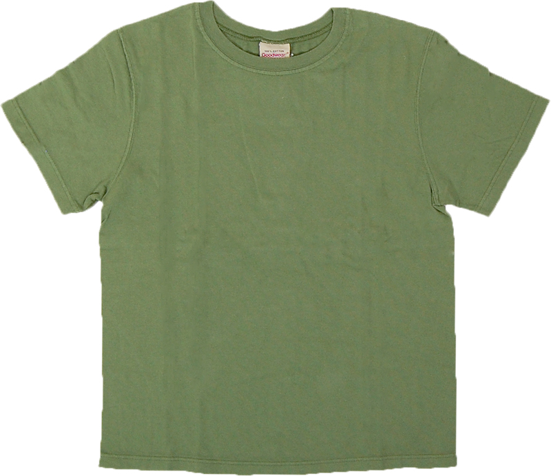 Goodwearの半袖Tシャツです。ヘビーコットンの生地にオーバーダイ(後染め)加工することで、独特の素材感を出しています。着こむと色落ちや当たりが出てきていい味が出てくるのも特徴です。使い込んでもよれにくいGoodwearのTシャツならではの楽しみ方です。こちらの色は写真1,2枚目をご参照ください。アメリカ製です。