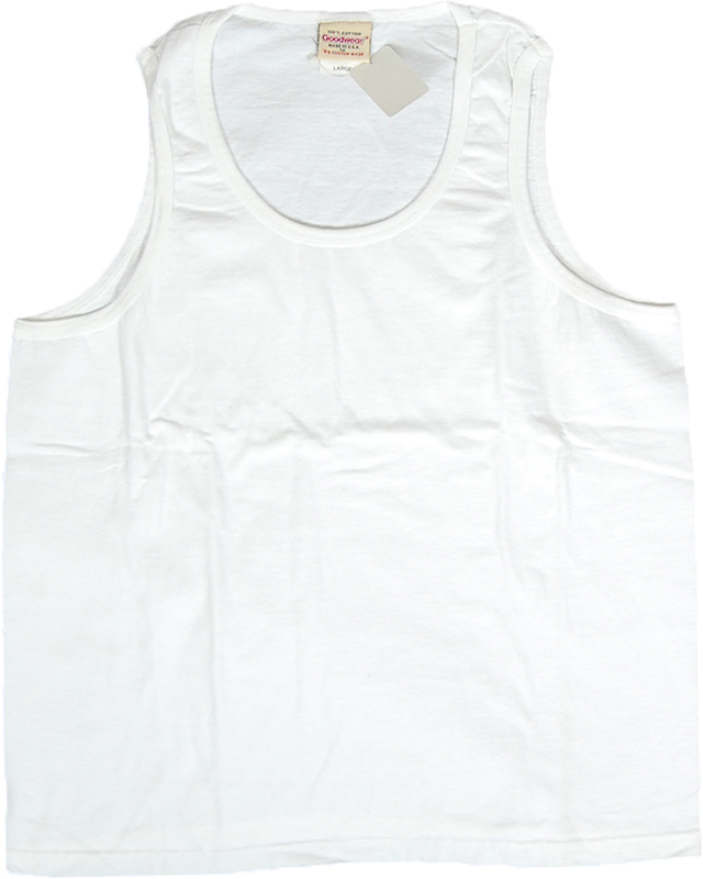 Goodwearのタンクトップです。着こむと色落ちや当たりが出て、いい味が出てくるのも特徴です。使い込んでもよれにくいヘビーコットンを使ったGoodwearのTシャツならではの楽しみ方です。シャツのインナーに最適です。こちらの色は写真1,2枚目をご参照ください。