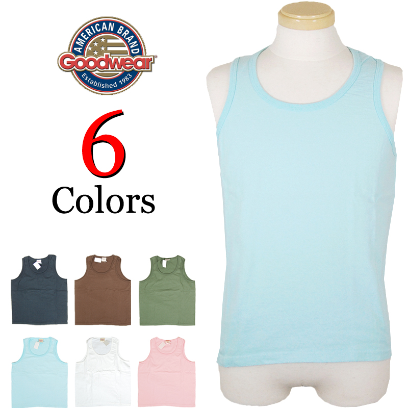 Goodwearのタンクトップです。着こむと色落ちや当たりが出て、いい味が出てくるのも特徴です。使い込んでもよれにくいヘビーコットンを使ったGoodwearのTシャツならではの楽しみ方です。綺麗な色なので、シャツのインナーに最適です。こちらの色は写真1,2枚目をご参照ください。