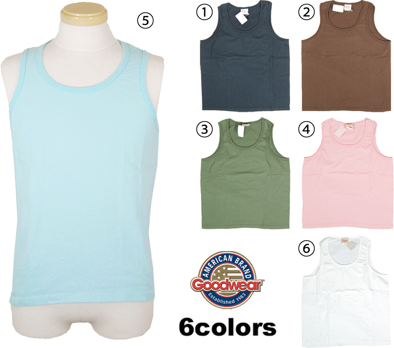 Goodwearのタンクトップです。着こむと色落ちや当たりが出て、いい味が出てくるのも特徴です。使い込んでもよれにくいヘビーコットンを使ったGoodwearのTシャツならではの楽しみ方です。綺麗な色なので、シャツのインナーに最適です。こちらの色は写真1,2枚目をご参照ください。