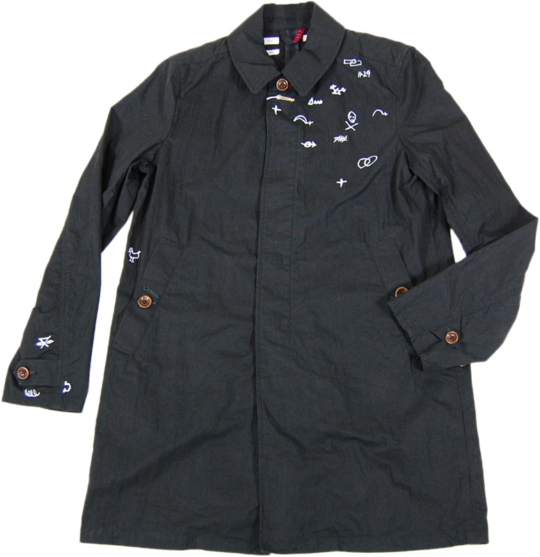 ポールスミスのナイロン混コートです。所々手書きの記号が入っているポールスミスらしい面白いデザインです。
