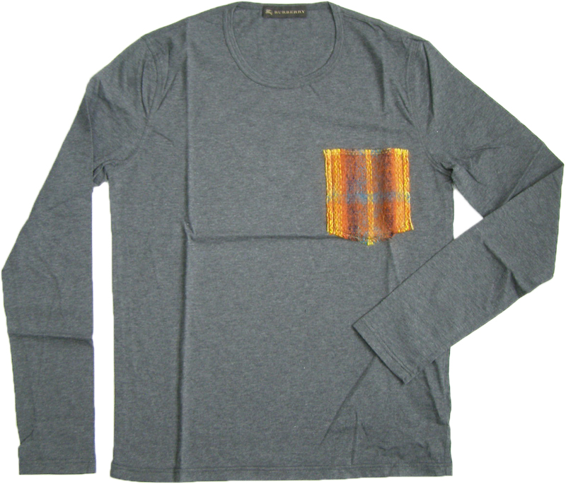 ダークグレー黄系モヘアポケットロングTシャツ