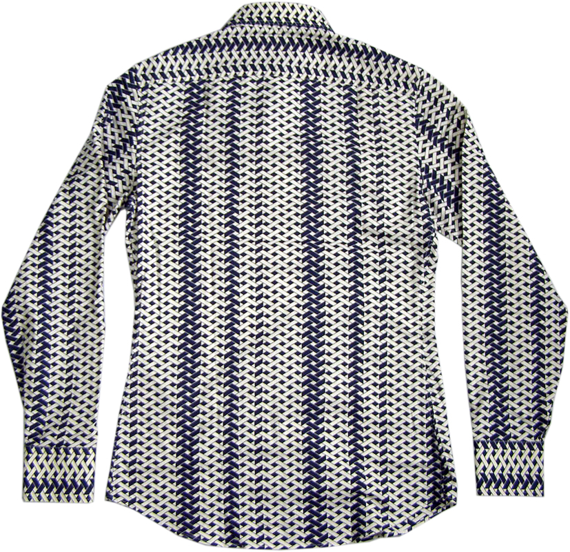 編み目柄のシャツです。高級感のある美しいプリント、美しいシルエットはさすがプローサムです。