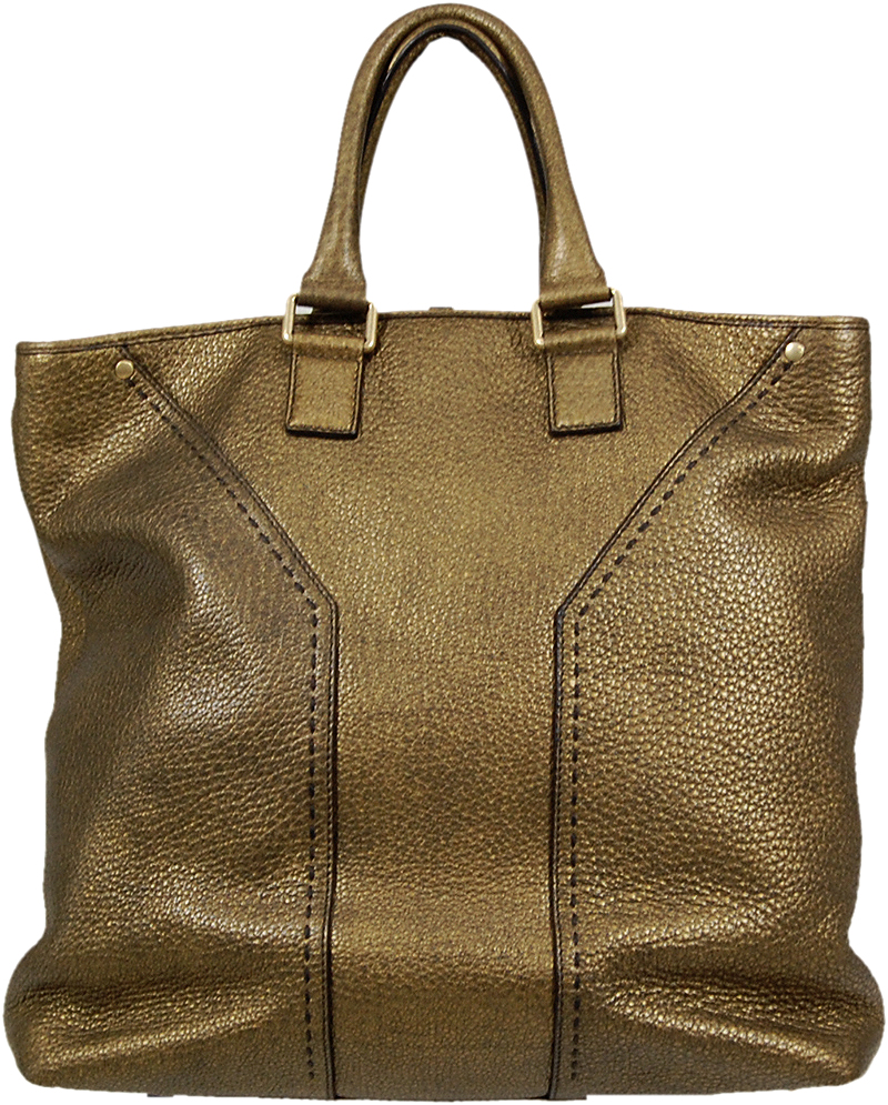 YSLらしいラグジュアリーさで人気のミューズライン、希少なメンズのトートバッグです。肉厚の上質レザーを使用していますので、重量感があります。ゴールドといっても輝きを押さえた嫌みのないゴールドで、使い込むほどに色落ちし、味が出てきそうです。