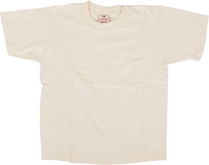 Goodwearの半袖Tシャツです。ヘビーコットンの生地にオーバーダイ(後染め)加工することで、独特の素材感を出しています。着こむと色落ちや当たりが出てきていい味が出てくるのも特徴です。使い込んでもよれにくいGoodwearのTシャツならではの楽しみ方です。こちらの色は写真1,2枚目をご参照ください。アメリカ製です。表記はXSですが、レディースサイズのMに相当します。トルソはXSを着用しています。