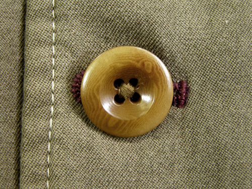 ミリタリーテイストの入ったコレクションラインのブルゾンです。 木目の入ったボタンとえんじのボタンホールがお洒落です。