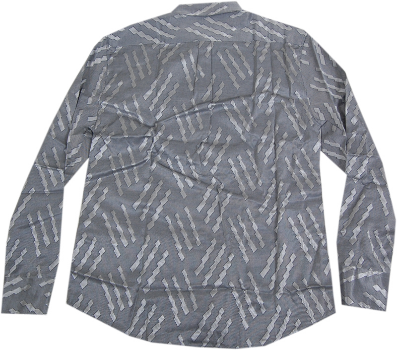 GIORGIO ARMANIの黒タグ、ネクタイの様に仕上げられた高級シャツです。薄手の生地は着心地も良く、色はシルバーなので黒系のパンツやデニムとの相性も良く、合わせ易いです。
