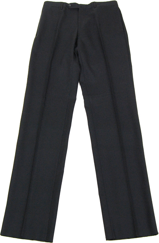 黒のスーツです。ジャケットは2ボタン、センターベント、パンツはノータック、ストレートです。生地や縫製はまさに最上級、伝統的な技術で作られているにもかかわらず、現代風な要素を取り入れたトレンド感のある緻密な美しさが光るスーツです。袖は未仕立てで、ボタンが付属します。