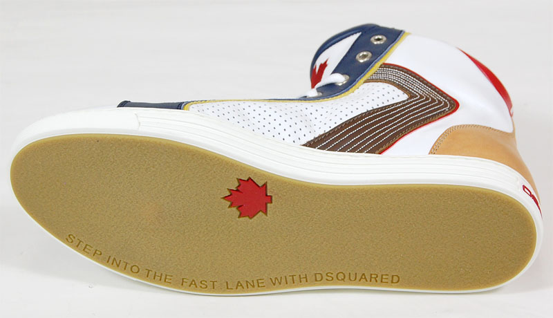 ディスクエアードラしいカラーリングが魅力的なハイカットスニーカーです。クッション性もあり履き心地もいいです。イタリア製です。当然ですが本物ですので、ご安心下さい。