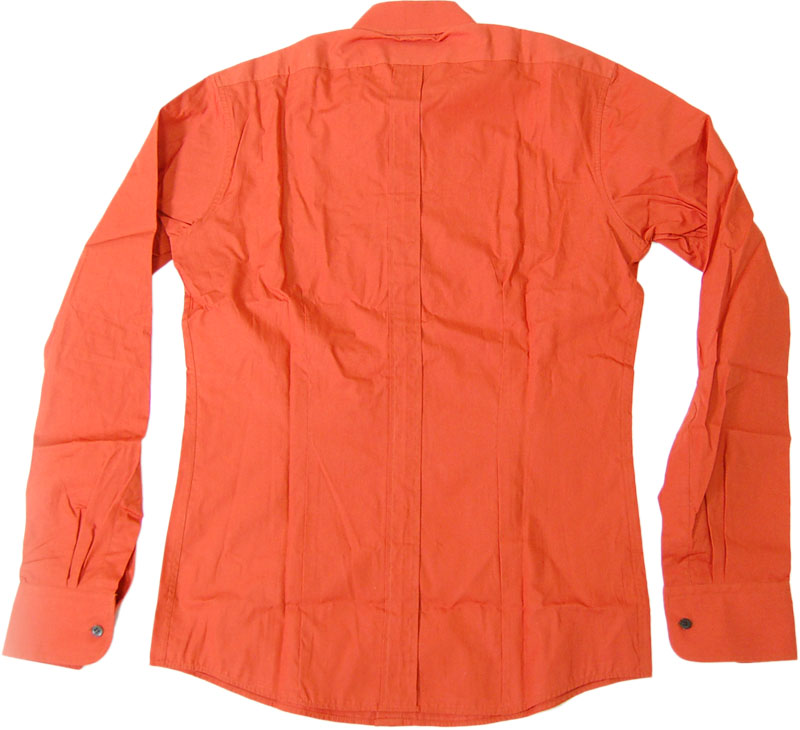 ドリスのオレンジシャツです。発色のいいオレンジにドリスらしいきれいなシルエットはジャケットやニットのインナーに映えそうです。
