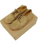 ポールスミスのトリッカーズ別注モデルです。トゥ部分とサイド部分にはメダリオンがございます。ブルーチャー(外羽根式)でパイピングがされているのも特徴の一つです。ソールはラバーのクレープソールです。