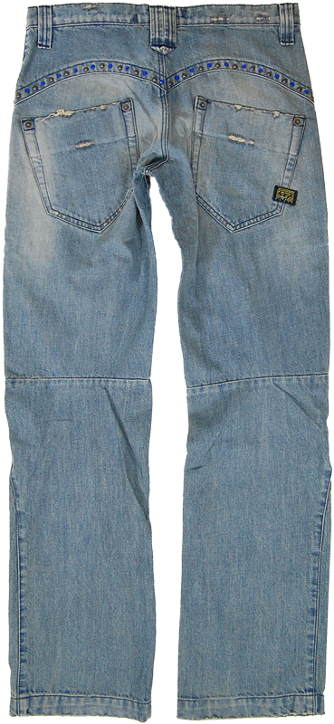 ラインストーンで装飾されたデニムです。程よくクラッシュ加工されています。パンツ専門ブランドの経験に裏打ちされた完成度の高いデニムです。加工には個体差がございます。タグは一部欠けている場合がございます。