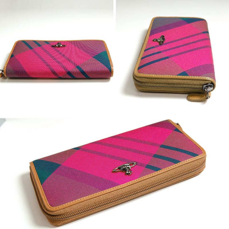ヴィヴィアンのラウンドジッパー長財布です。チェック柄にメタルオーブがついた、ヴィヴィアン定番のデザインです。マチやポケットもたっぷりあります。