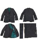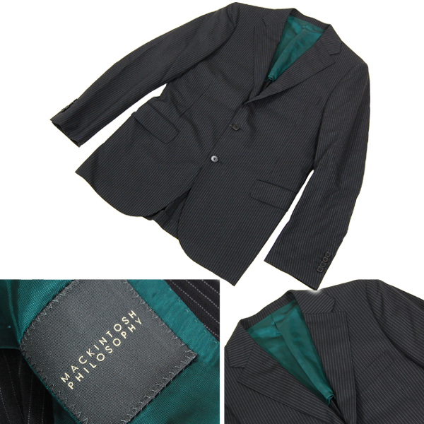 マッキントッシュの黒のピンストライプジャケットです。ノッチドラペル、2ボタン、サイドベンツの定番の形ですので、使いやすいです。裏地にきれいなグリーンを使っているのもマッキントッシュらしいです。脱いだ時やちらっと見える裏地は意外と重要な要素です。春夏に一着持っていると便利です。 定価66150円です。