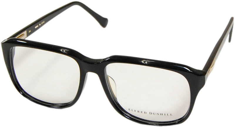 ダンヒルのメガネフレームです。テンプルについたロゴプレートや、先セルのdが刻印されたメタルアクセントがいかにも高級なメガネです。
