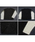 黒袖白モヘヤ混Vネックニット