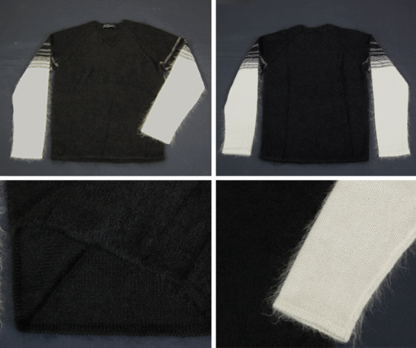 黒袖白モヘヤ混Vネックニット