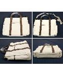 使いやすいキャンバス素材の2WAYビジネスバッグです。裏地は ブルーのストライプですので、開けたときにさわやかです。両サイドにポケット、持ち手からのびるラインの間にもポケットがあります。2WAYでお使いいただける機能的なバッグです。 定価24150円です。多少の汚れ、擦れがある場合がございますので、ご了承ください。