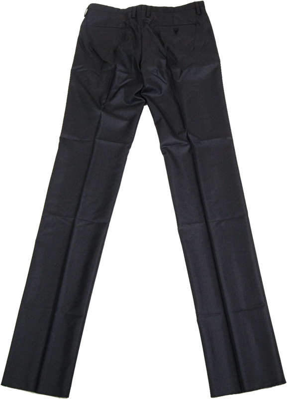 ダークグレーのスラックスです。胯浅、細身のブラックバレットらしいシルエットです。ポリエステル混ですので、履き心地が良く、軽い光沢感が高級感を出しています。 デリケートな生地な為、多少糸の玉、傷等がありますのでご了承ください。