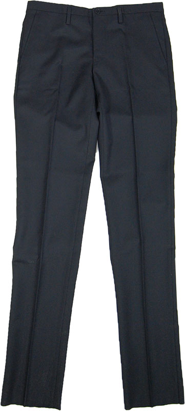光沢感のある黒のスラックスです。股浅細身のブラックバレットらしいきれいなシルエットです。