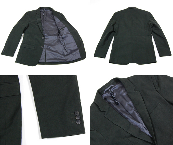 ブラックバレットの2ボタンスーツ(セットアップ)です。 ジャケッとは人気のナローラペル、細身のデザインで、大変使いやすいです。ベントはセンターです。 パンツはノータック、股浅のきれいなシルエットです。 定価57750円(ジャケット39900円、パンツ17850円)です。 綿素材のため若干の擦れがございます。ご了承ください。