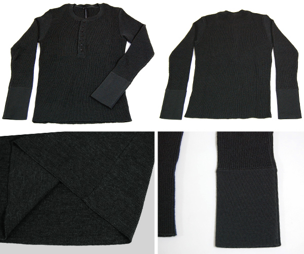 カーキのヘンリーネックニットです。ワッフル織の気持ちの良い生地です。定価23100円です。