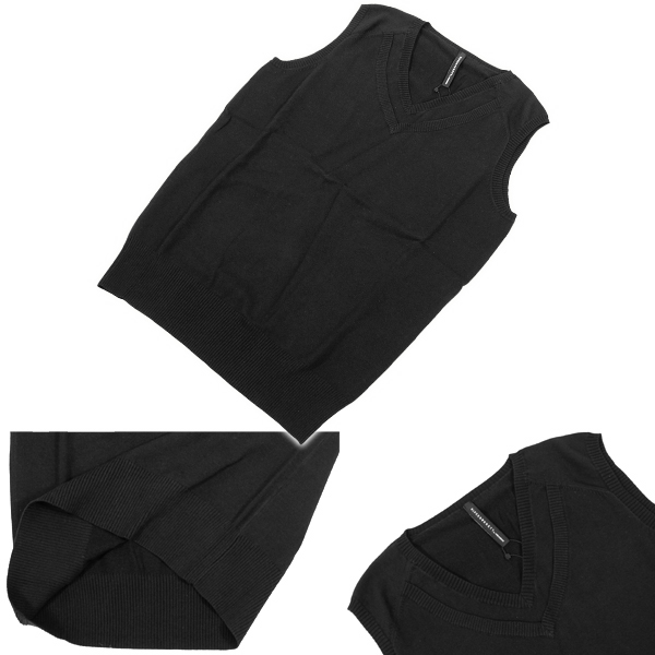 レイヤードデザインのVネックベストです。シャツやTシャツの上にも、インナーにすればレイヤードのネックがアクセントにもなる使いやすいベストです。