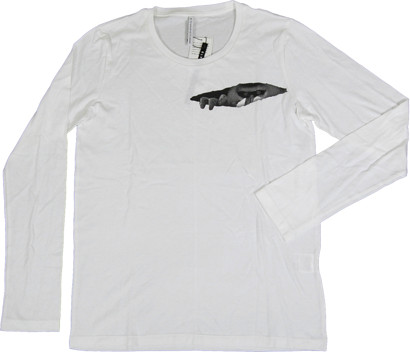 猿プリントTシャツです。Tシャツにあけた隙間から猿が覗いているという、ブラックバレットらしいひねりの利いたデザインが面白いです。