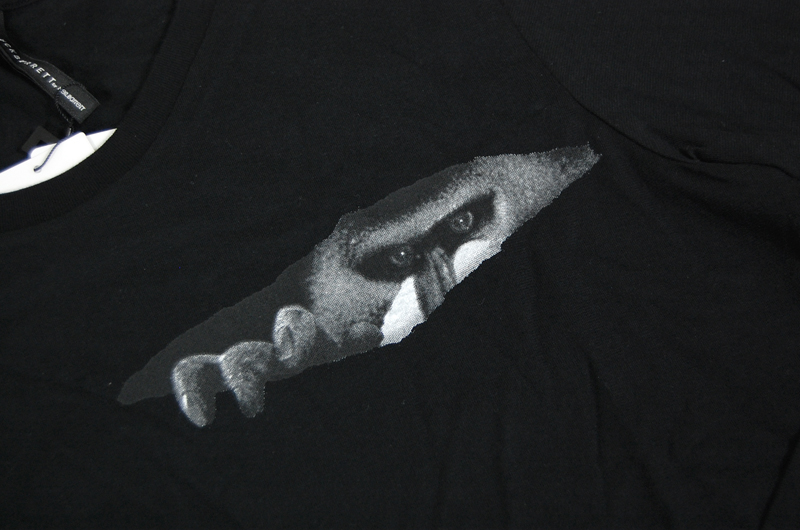 猿プリントTシャツです。Tシャツにあけた隙間から猿が覗いているという、ブラックバレットらしいひねりの利いたデザインが面白いです。