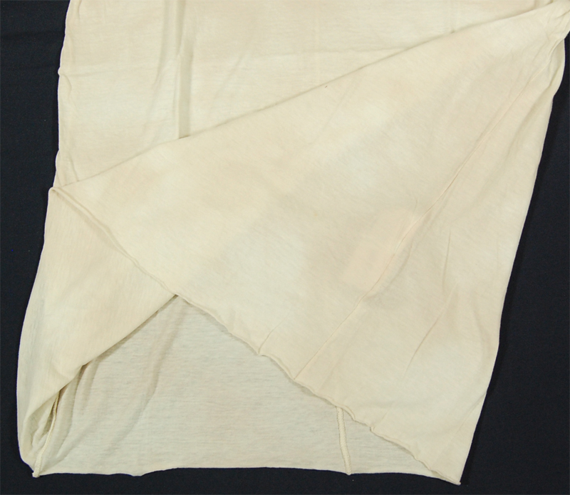 ブラックバレットのベージュのむら染めVネックTシャツです。写真では分かりづらいですが、よく見るとピンクでむら染めされています。裾や袖は切りっぱなしです。柔らかい上質な素材を使用していますので、着心地もいいです。